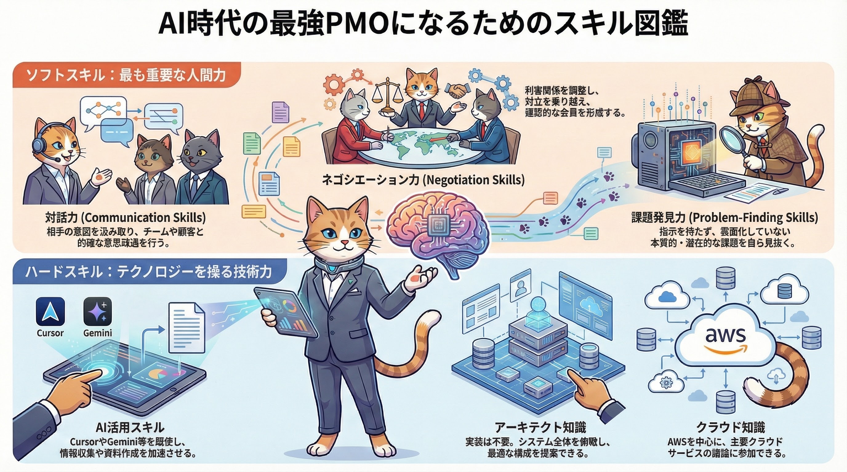 PMOはコードを記述する必要はありません。しかし、システム全体を俯瞰し、最適なアーキテクチャを理解し提案する能力は不可欠です。