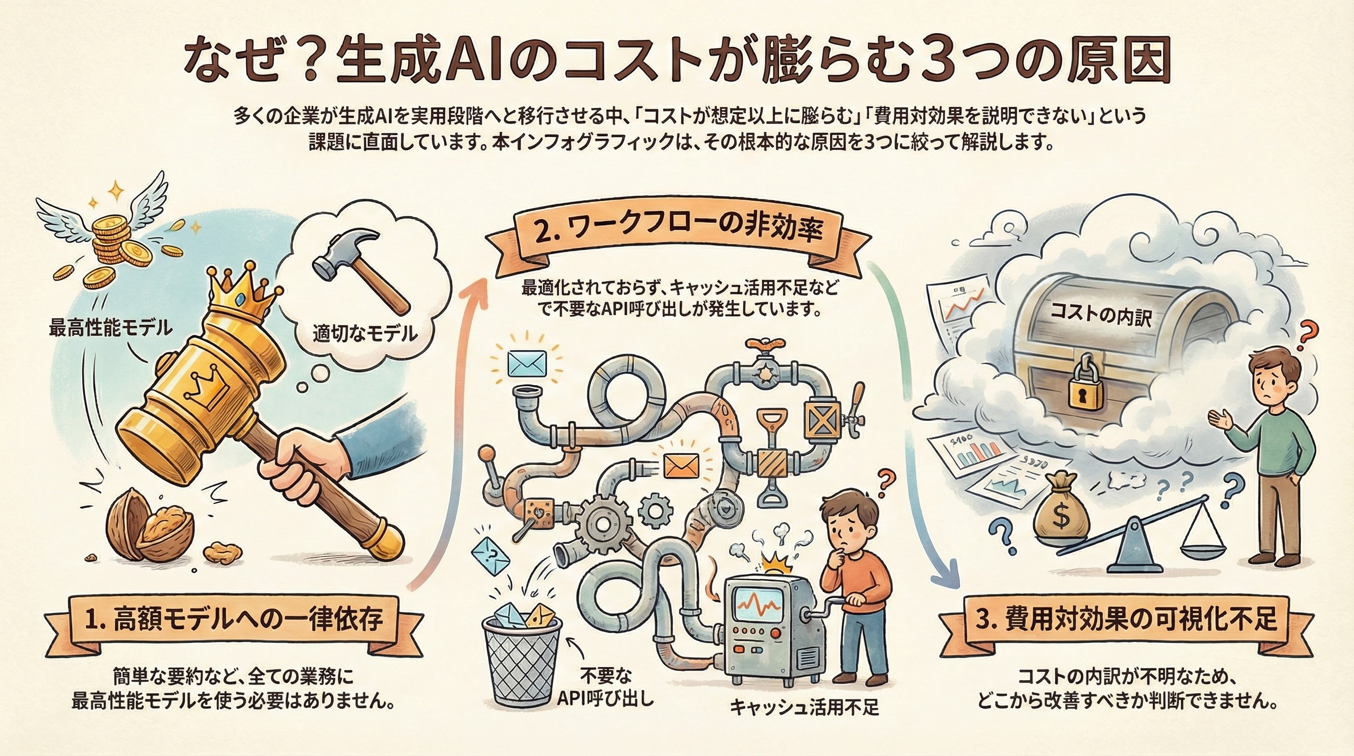 多くの企業では、AIワークフローが最適化されておらず、不要なLLM呼び出しが発生しています。