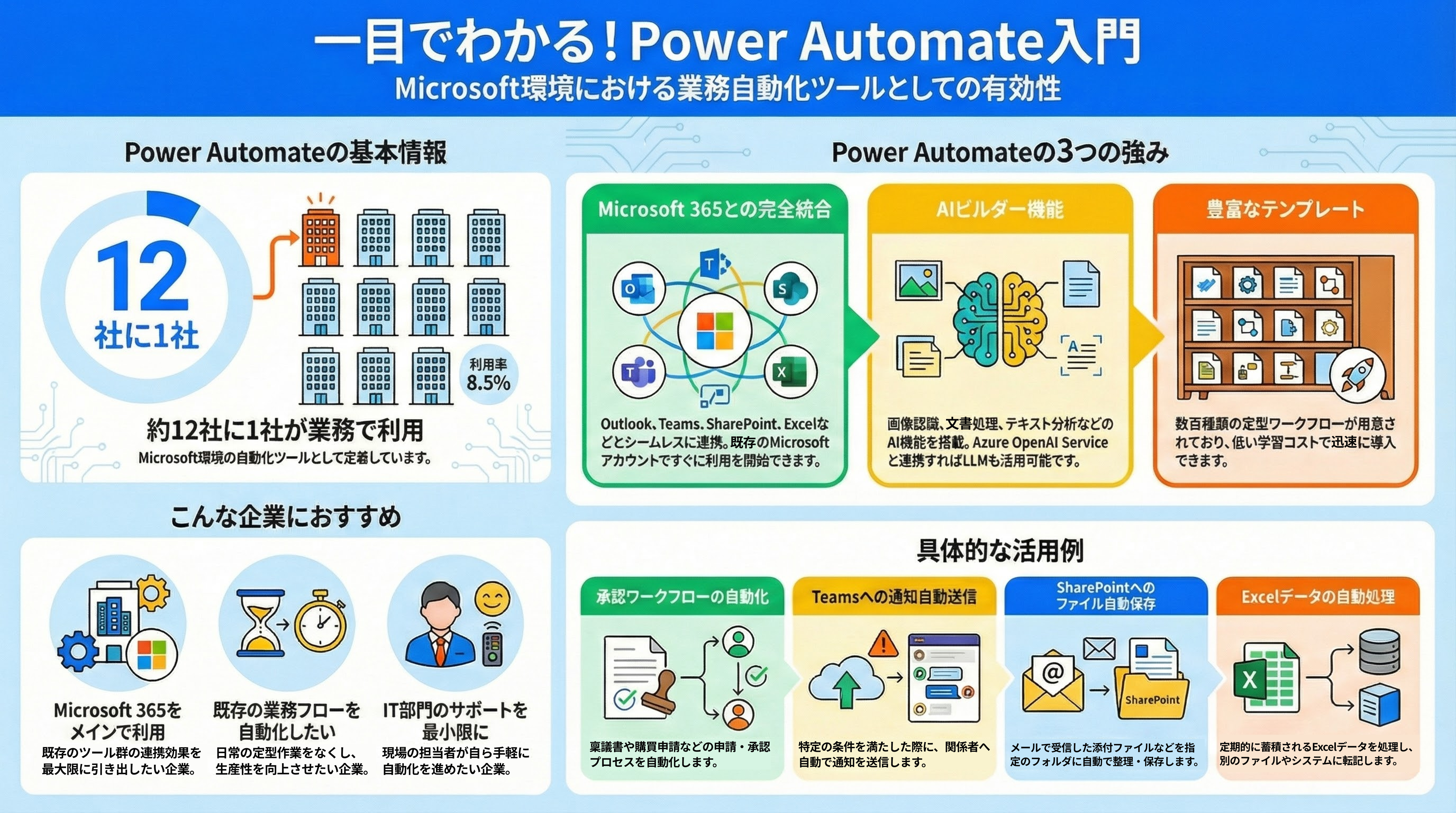 約12社に1社がPower Automateを業務で利用しており、Microsoft環境を持つ企業の自動化ツールとして定着しています。