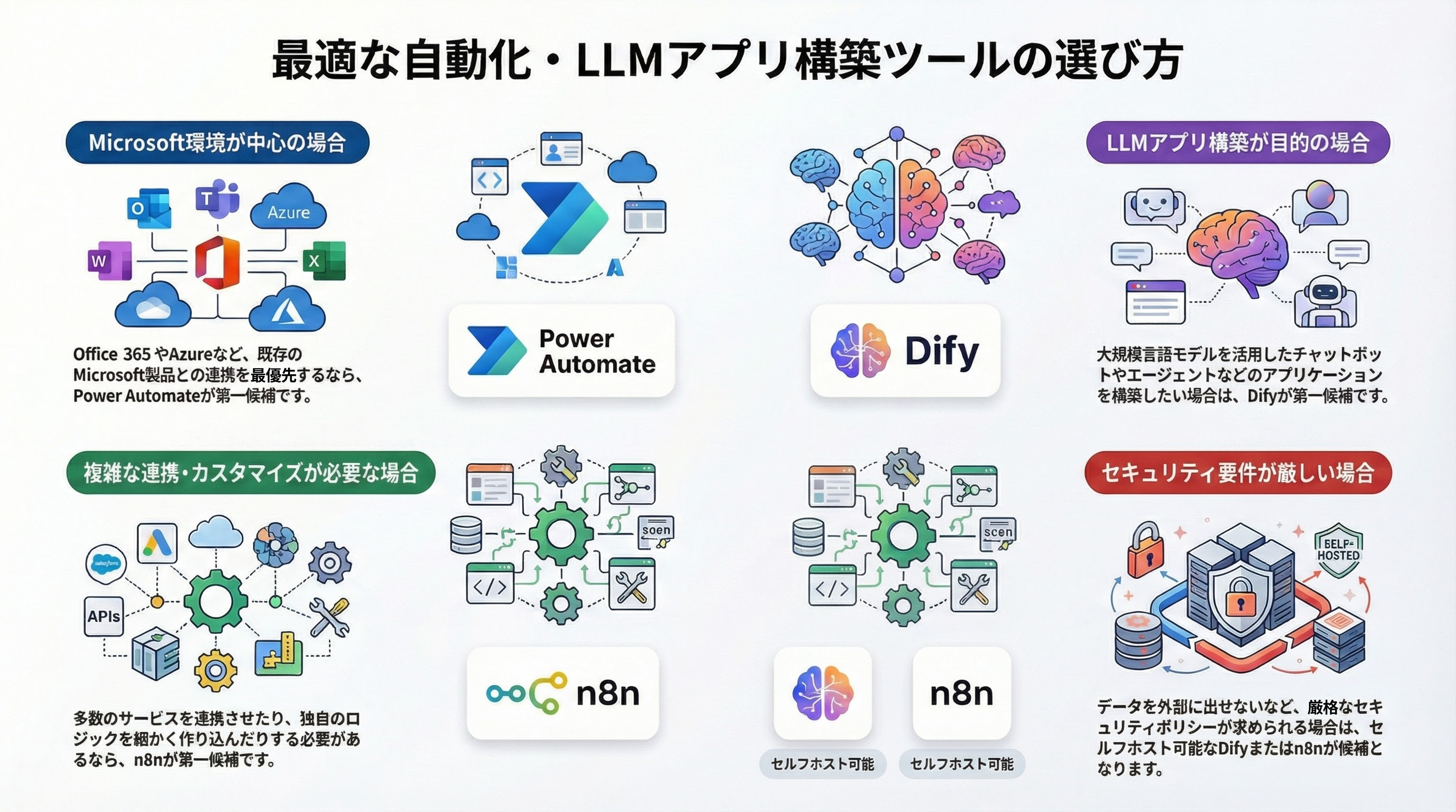 4. 選定はMicrosoft環境の有無、LLM活用の目的、セキュリティ要件で判断
