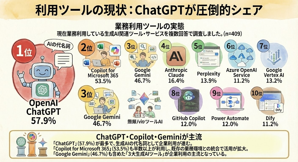 - ChatGPT・Copilot・Geminiが企業利用の主流