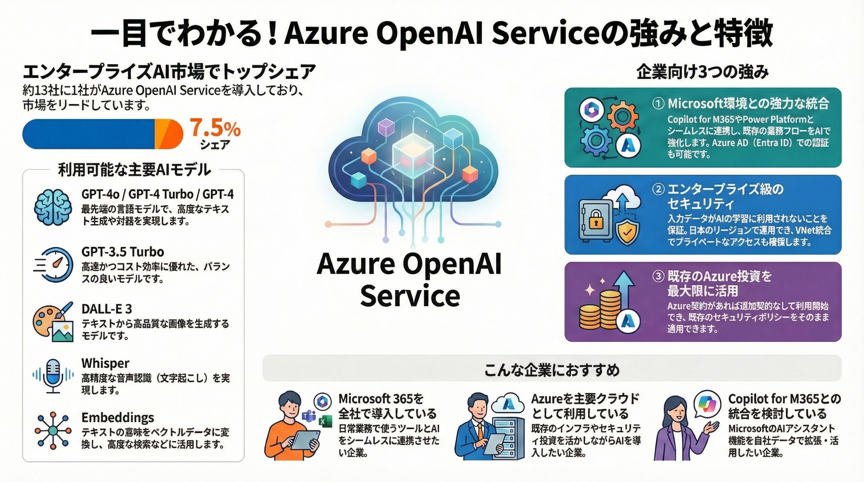 Azure OpenAI Service(7.5%):Microsoft環境との統合が強み