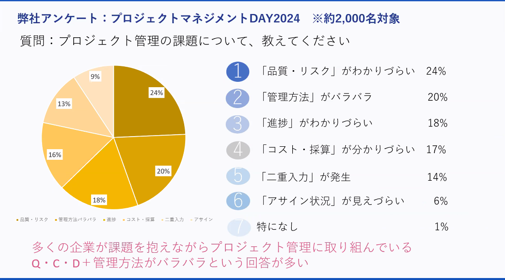 プロジェクトマネジメントDAY2024のアンケート結果では、以下の3つが最多回答でした。