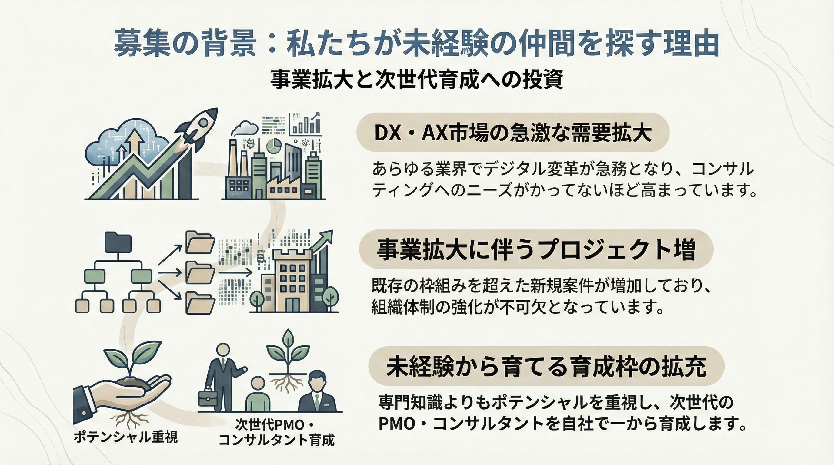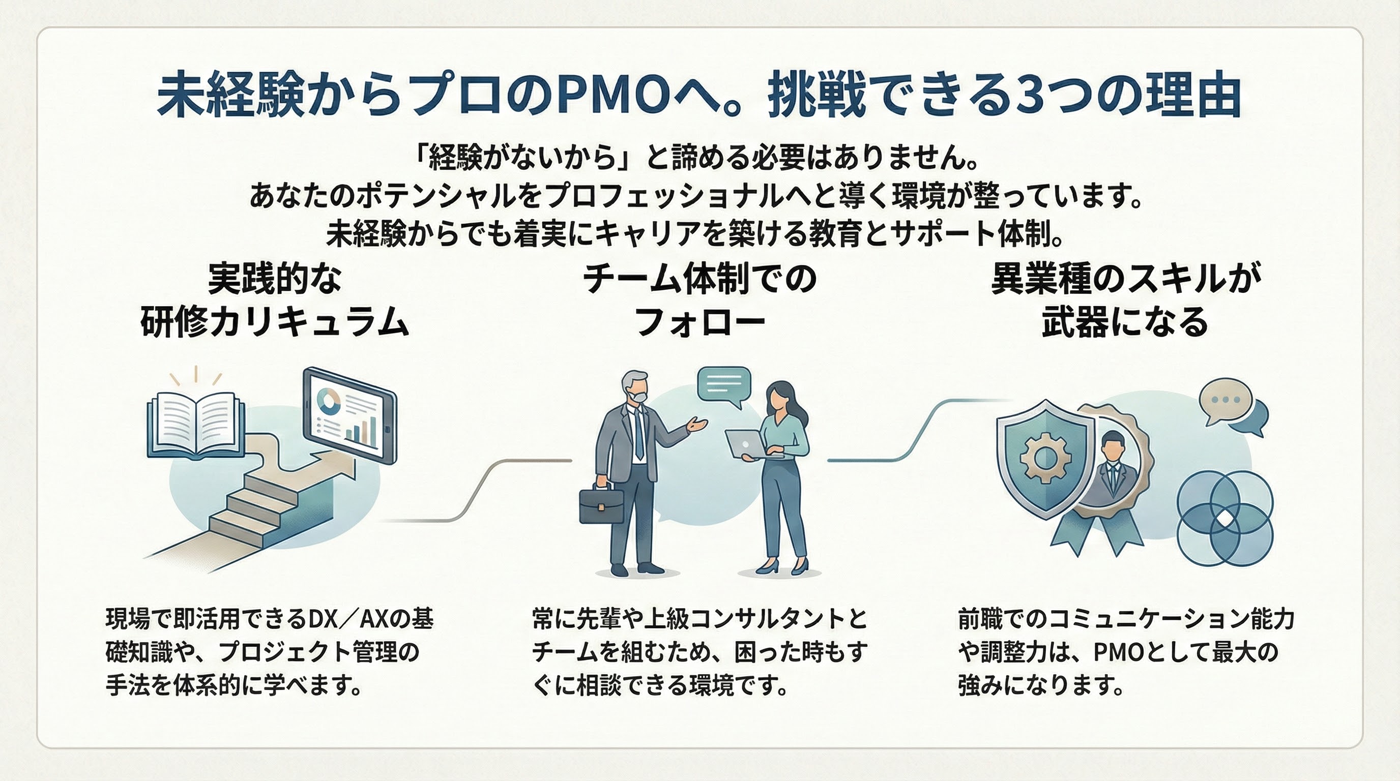 「コンサルタント・PMOって専門職でしょう?」「IT業界の経験がないと難しそう…」