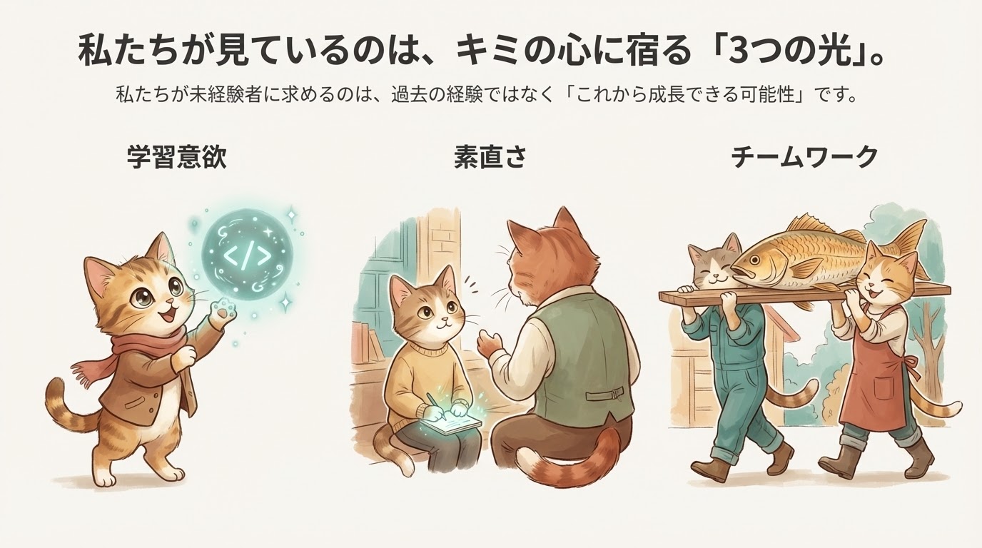 私たちが未経験者に求めるのは、過去の経験ではなく「これから成長できる可能性」です。