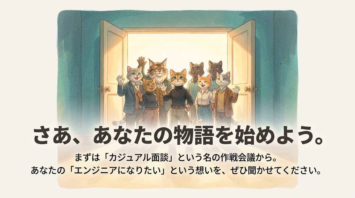 技術は後からいくらでも身につきます。大切なのは、「エンジニアになりたい」という想いと、学び続ける姿勢です。