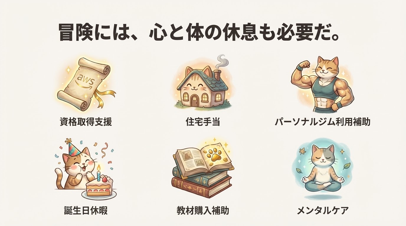 福利厚生の詳細は福利厚生ページをご覧ください。