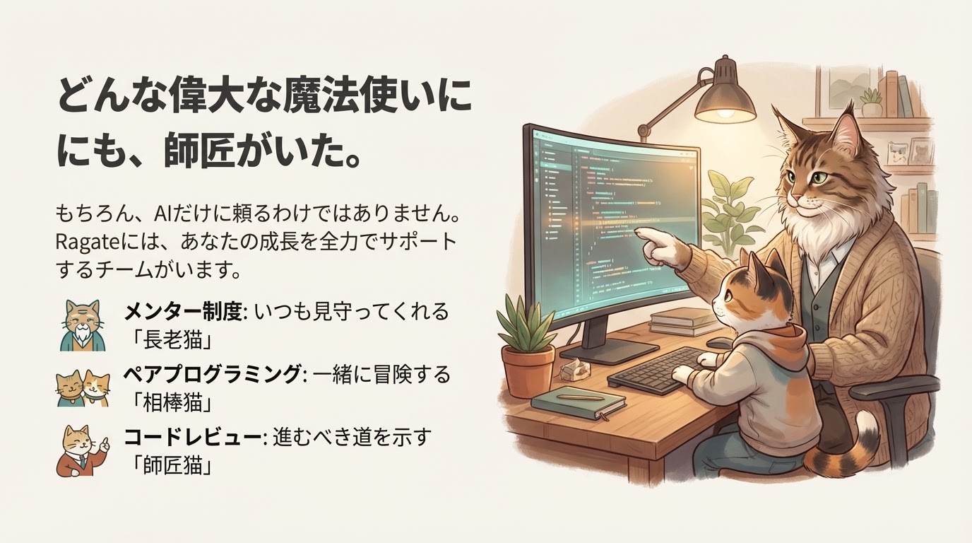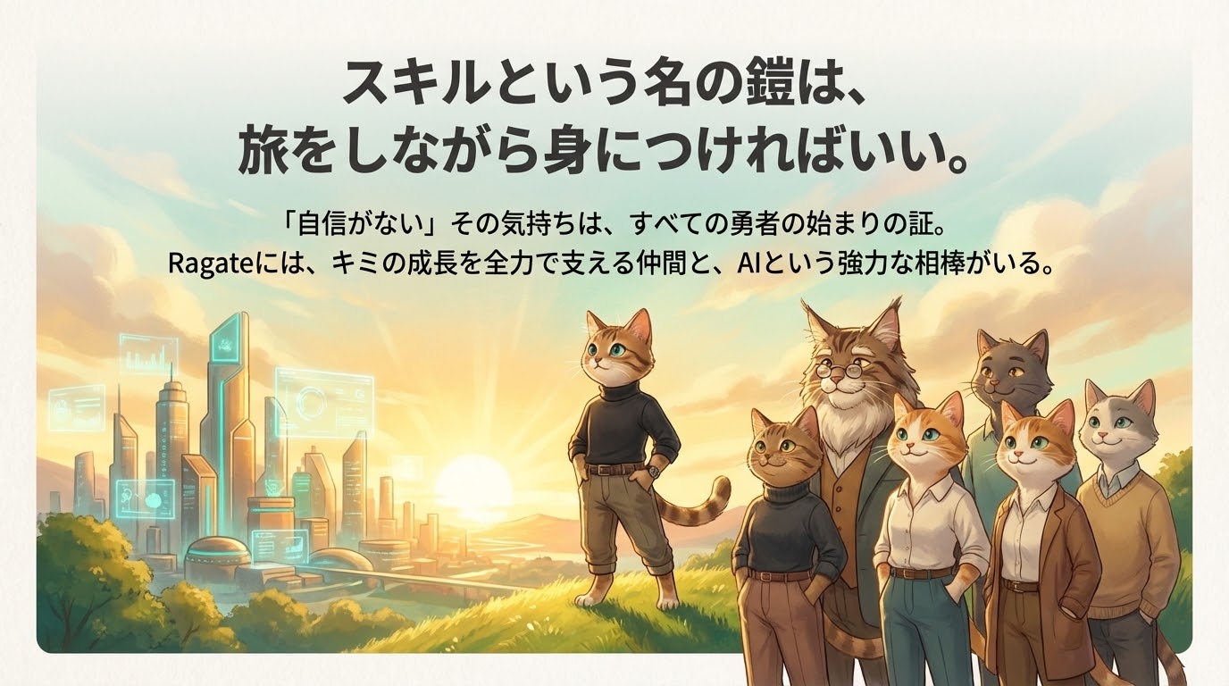 でも、今は生成AIという強力な味方がいます。そして、Ragateにはあなたの成長を全力でサポートするチームがいます。